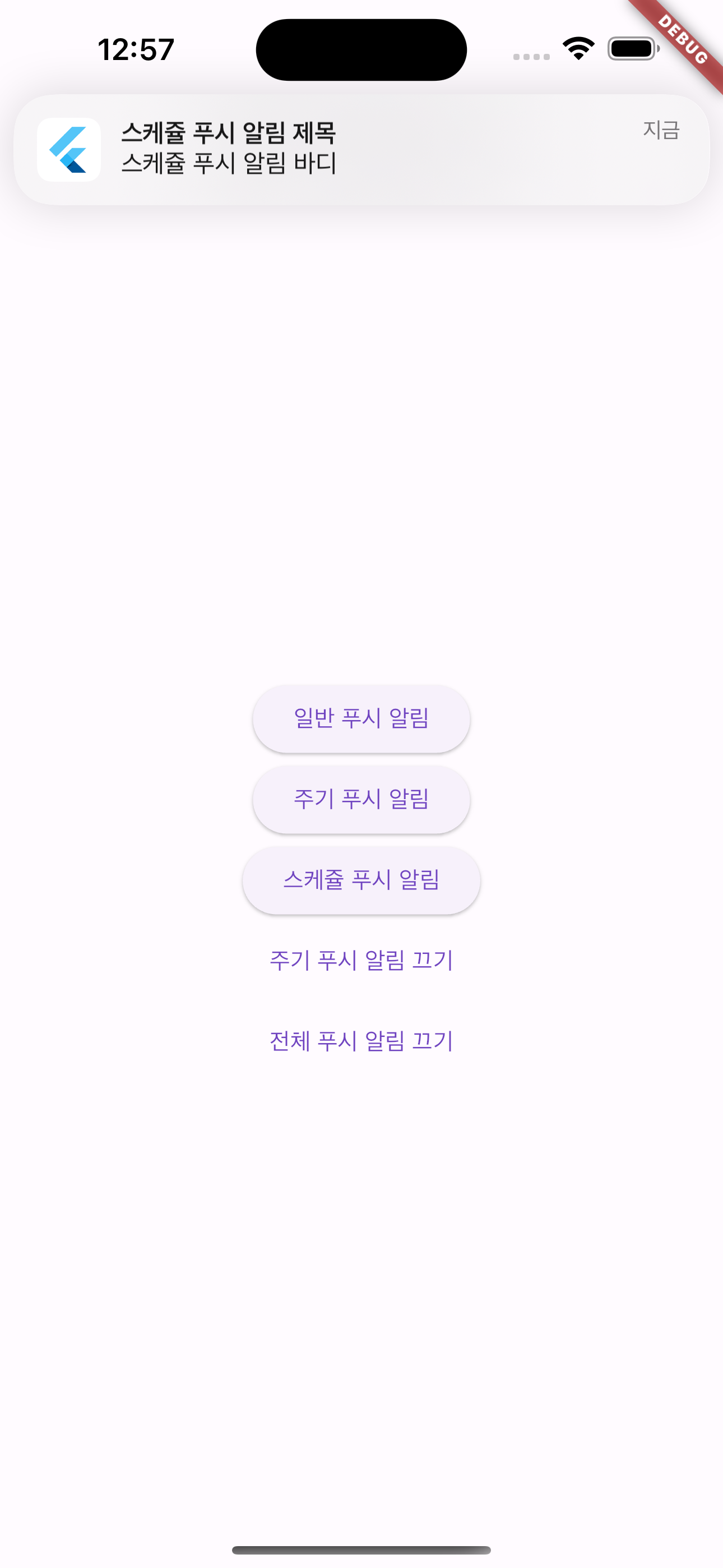 스케줄 푸시 알림은 버튼을 클릭하고 5초 안에 백그라운드로 앱을 내려야 해서 순발력(?)을 요하는 작업입니다. 🤣