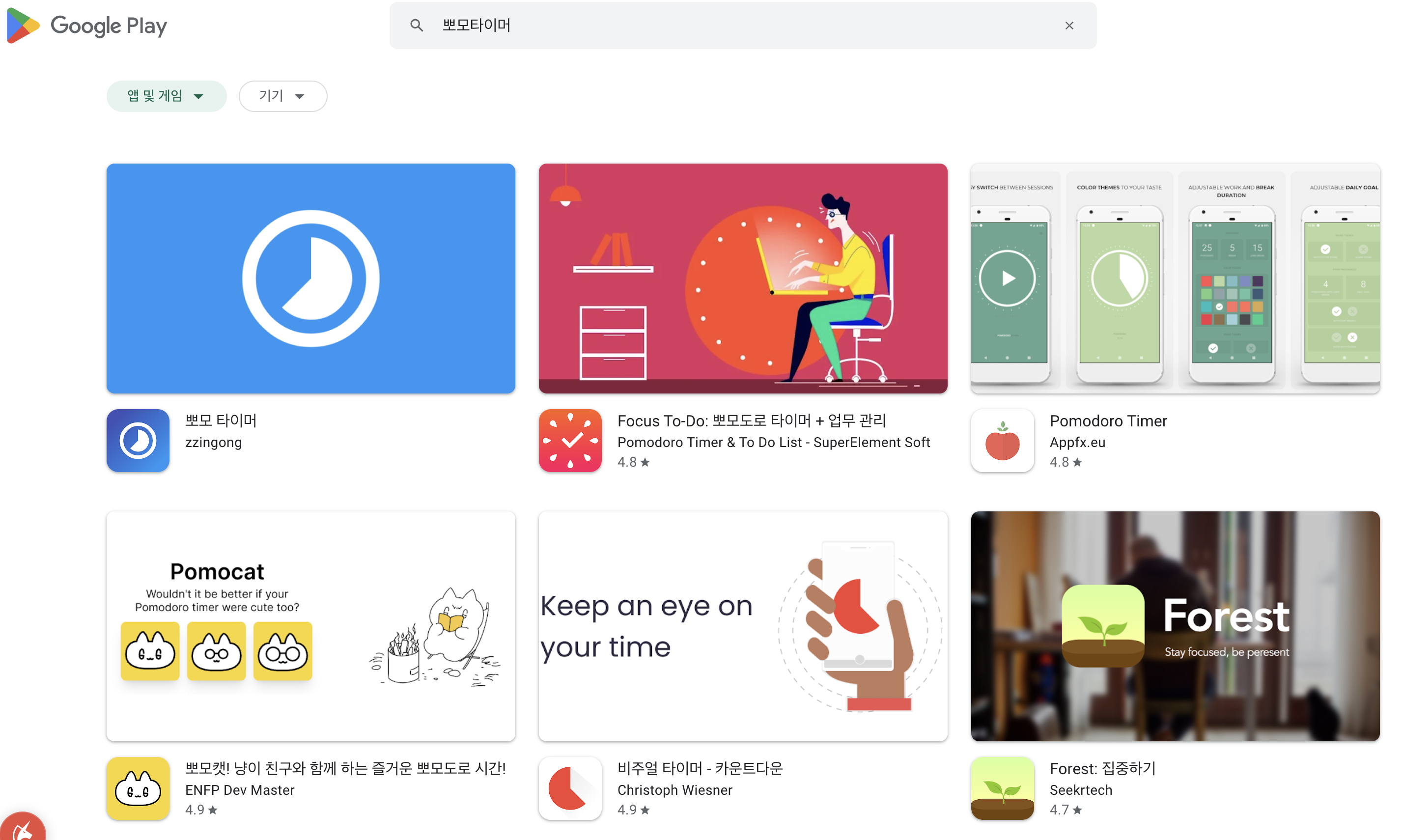 플레이 스토어에서 뽀모타이머라고 검색해 보니 깜짝 놀란 게 저 퍼런 이미지가 저렇게 쓰일 줄 몰랐어요...😂😂