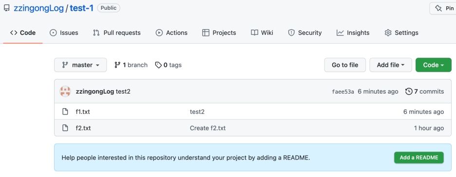 깃허브에서 확인해보면 개인저장소에서 커밋한 test2가 올라와있습니다.